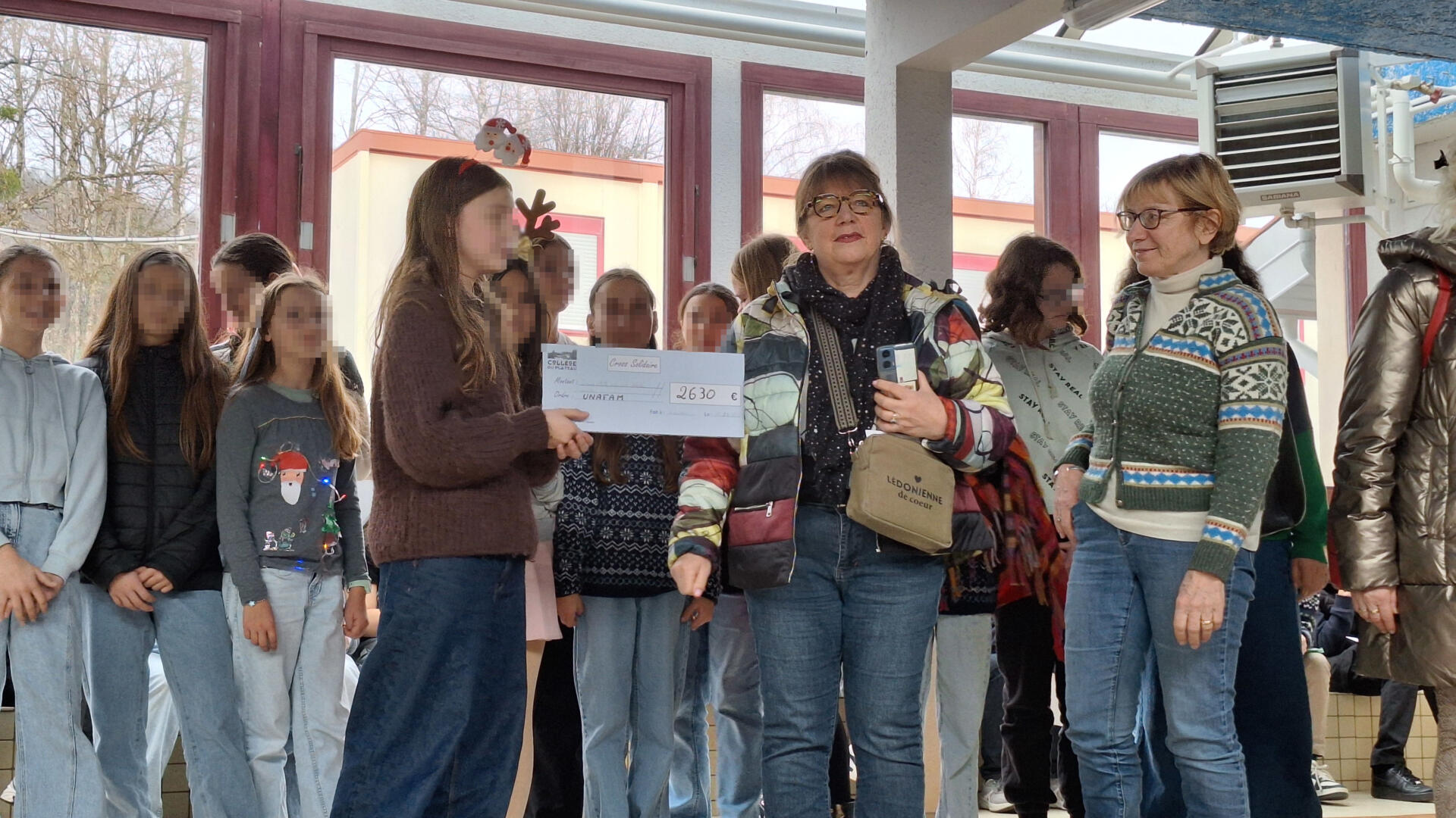 Cet évènement a été l’occasion de remettre à l’association UNAFAM un chèque de 2630 €, somme qui correspond aux dons récoltés par les élèves lors du cross solidaire. Bravo à tous !